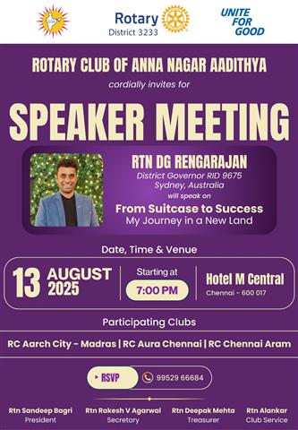 DG Rtn Rengarajan from RID 9675, Sydney, Australia was our guest ce. . .